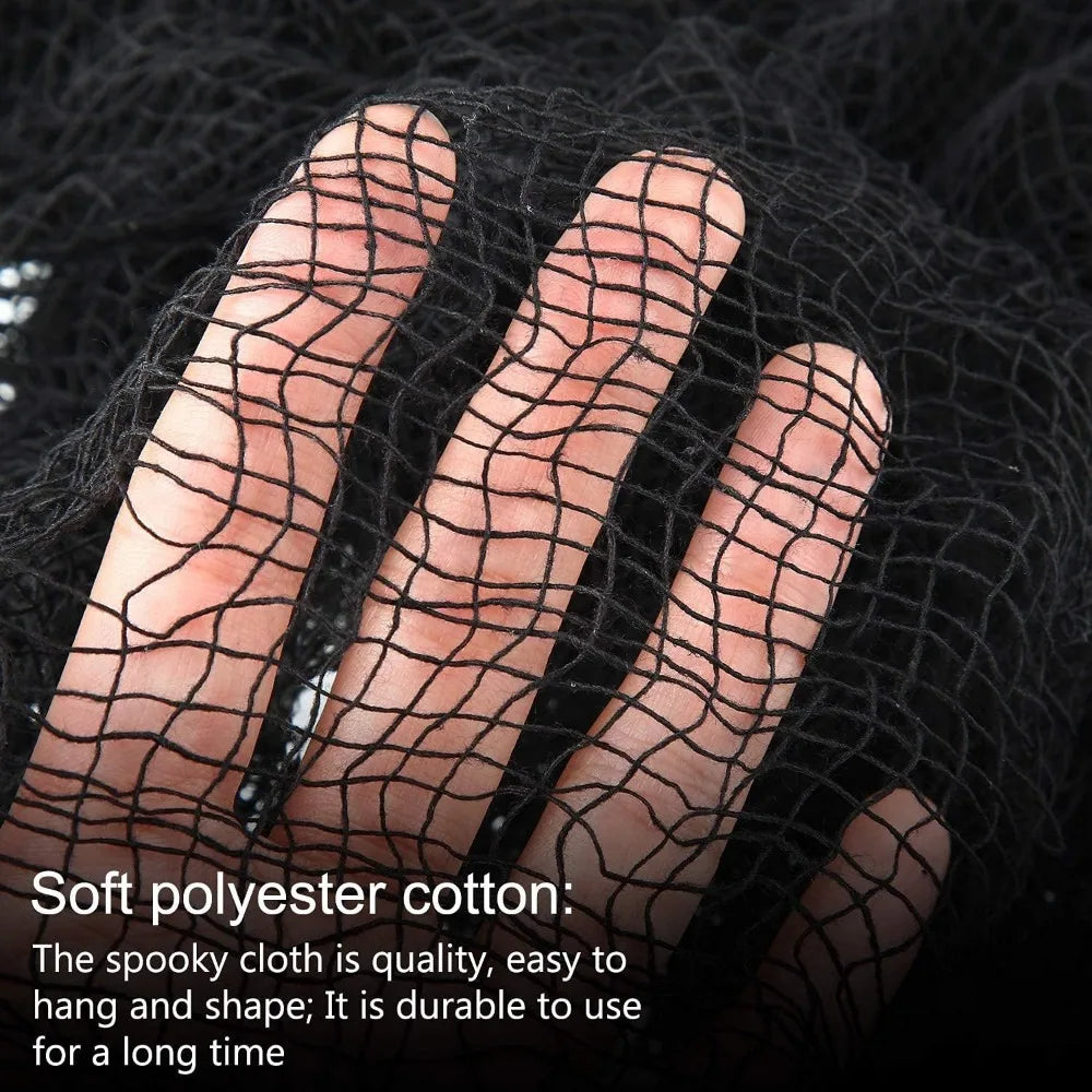 Creepy Atmosphere: Includes 6 black Halloween cloths, perfect for creating a haunted house effect. Hang on windows, ceilings, or furniture to set a spooky mood.