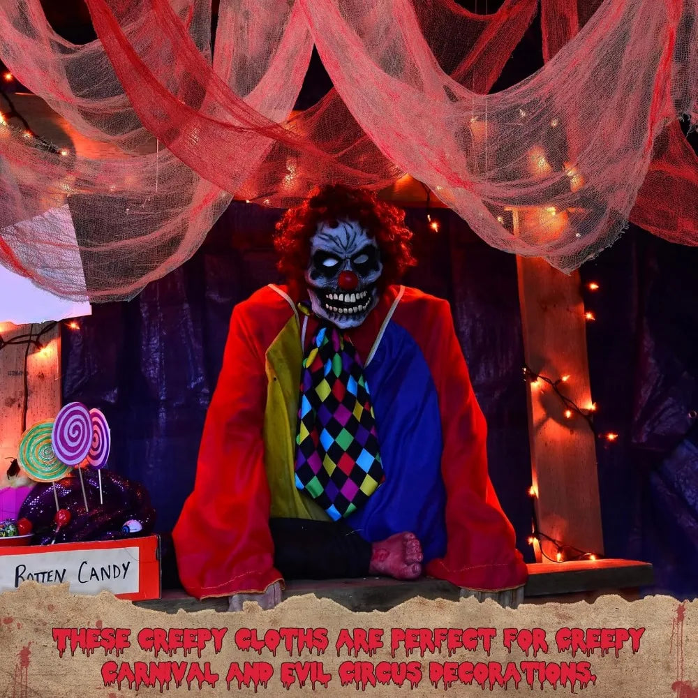Create a spine-chilling Halloween atmosphere with this 8-piece creepy cloth set. Designed for haunted circus or horror-themed parties, these gauze-like fabrics bring eerie detail to your decorations.