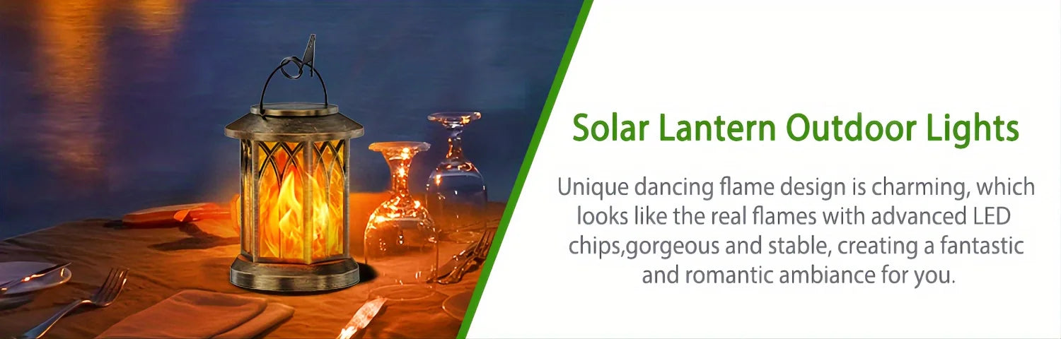 This hanging solar lantern adds a warm flame effect to your outdoor space, perfect for Halloween, parties, or year-round garden decor. The built-in solar panel charges during the day and turns on automatically at night, making it both decorative and energy-saving.