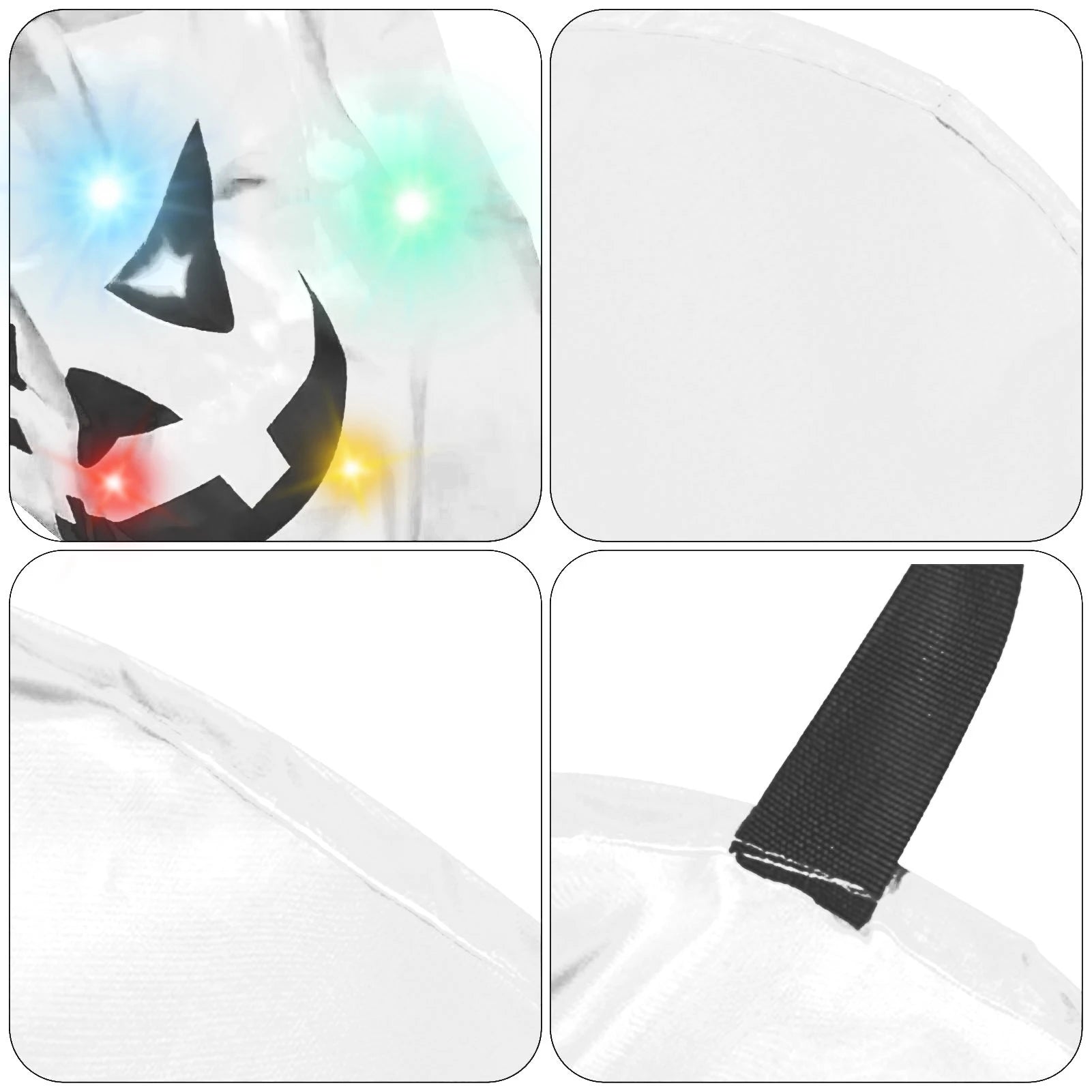 Made of durable and lightweight cloth material, this bag is foldable, reusable, and easy to carry. The soft handles provide comfort while holding candy, toys, or small gifts. Built-in LED lights create a colorful glow that enhances the spooky atmosphere and helps keep you visible at night.